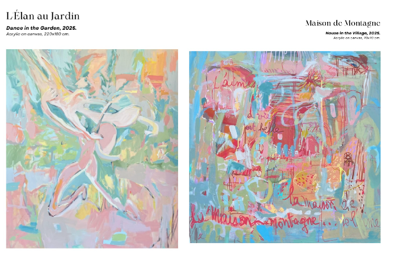 Au début des années 1990, Irène Ghanem quitte le Liban meurtri pour la France, guidée par une soif d’apprendre et d’élargir son horizon. À l’Académie de la Grande Chaumière puis à Marly-le-Roi, elle affine son trait, découvre la spontanéité du dessin, la vitalité du corps, le plaisir du geste libre. Paris la nourrit, mais très vite, c’est Los Angeles qui l’appelle. Là-bas, l’espace et la lumière de la Californie, la liberté du geste et l’influence de Willem de Kooning s’infusent dans son travail. Dans son atelier, elle apprend à écouter la couleur, à la laisser la surprendre, parfois même la dépasser: «Je peins à partir de la sensation, pas de l’observation.»
