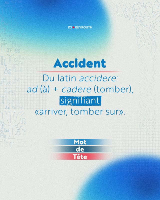 Le mot «accident» vient du latin accidens, participe présent du verbe accidere, formé du préfixe ad (à) et cadere (tomber). Il signifie littéralement «tomber sur, arriver par hasard».
