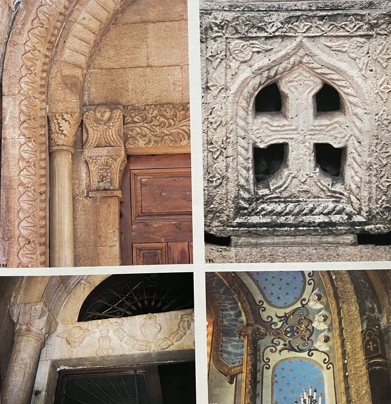 Sans être orthodoxe, la tradition maronite demeure néanmoins syriaque. Et le monde syriaque se consacre plus volontiers à la miniature des manuscrits et à l’iconographie des fresques qu’à la statue en ronde-bosse. Lorsqu’il s’adonne à la sculpture, il opte pour l’entrelacs et la broderie de pierre, alliant inventivité et souplesse des formes végétales. Ces mêmes frises et pyramides en dentelles qui ornent les manuscrits enrichissent les encadrements des ouvertures, des croix et des corniches de l’architecture.