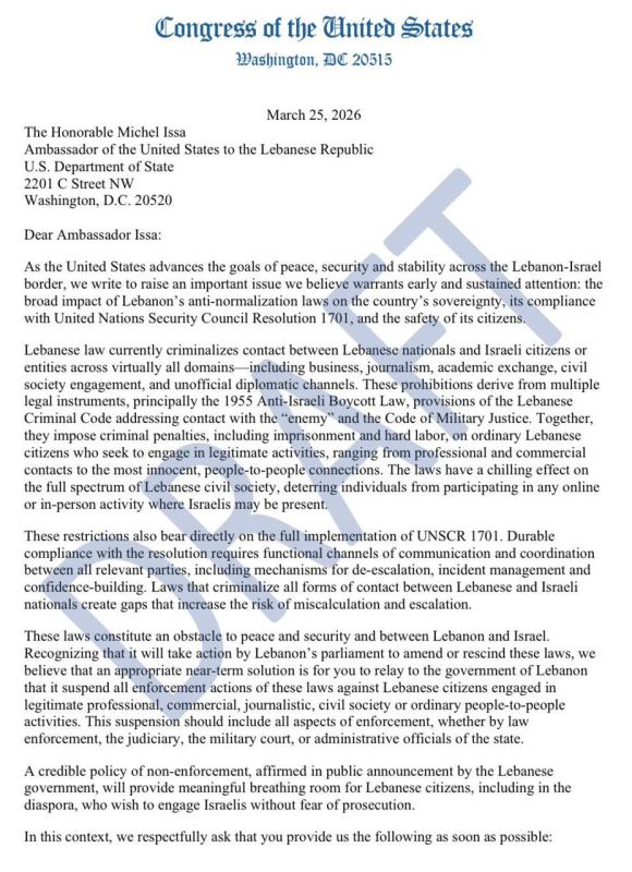 Des représentants américains – Brad Schneider, Darin LaHood et Abraham Hamadeh – ont adressé une lettre à l’ambassadeur des États-Unis au Liban, Michel Issa, l’exhortant à faire pression sur le gouvernement libanais afin de suspendre l’application des lois criminalisant les contacts entre Libanais et Israéliens.
