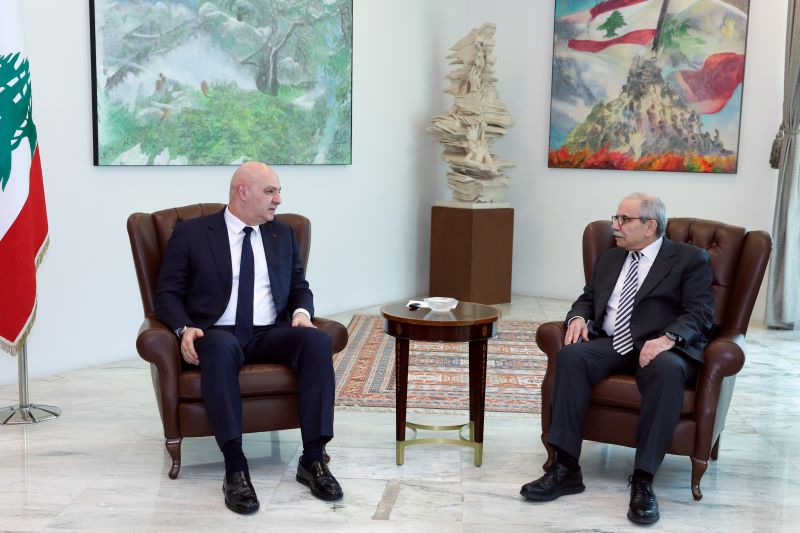 Le président Joseph Aoun s'entretenant avec le Premier ministre Nawaf Salam en amont d'un Conseil des ministres au Palais présidentiel le 30 avril 2026 / © Palais présidentiel