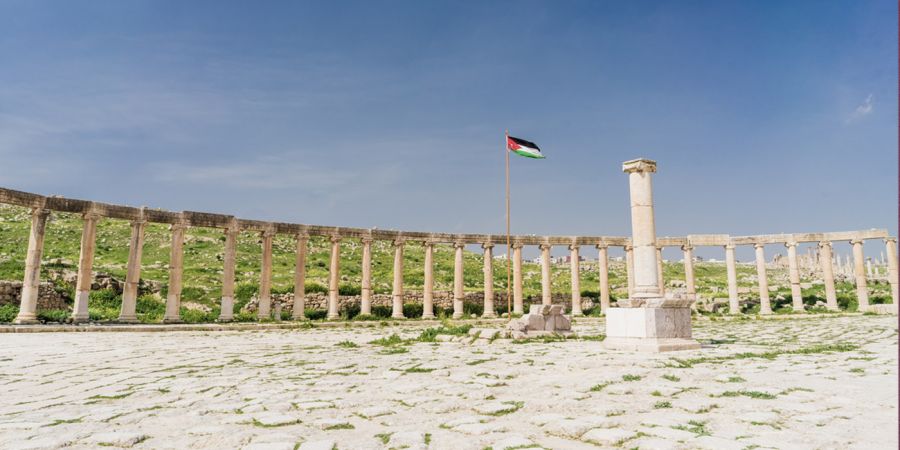 Jerash, aujourd’hui célèbre pour ses ruines gréco-romaines bien conservées, comptait environ 25.000 habitants au IIIᵉ siècle, mais sa population avait chuté à 10 000 habitants à la fin du VIᵉ siècle, fragilisant la ville face aux crises sanitaires. Située dans la région de la Décapole, Jerash servait de centre commercial, ...