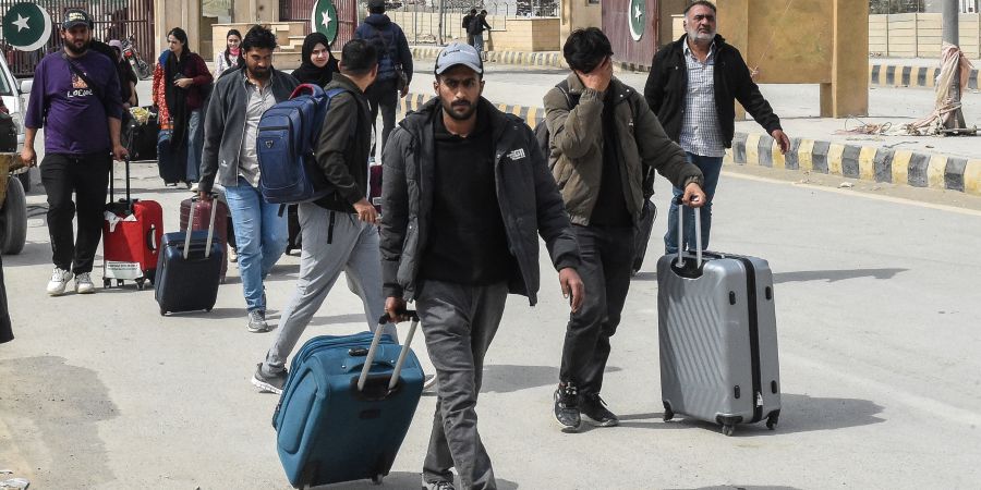 Valises à la main, de nombreux ressortissants pakistanais passent la frontière depuis l'Iran voisin, décrivant les missiles et le chaos pendant qu'ils fuient précipitamment à la suite des frappes israélo-américaines. Un flux ininterrompu de personnes franchit les grandes portes métalliques du poste-frontière séparant Mirjaveh, en Iran, ...
